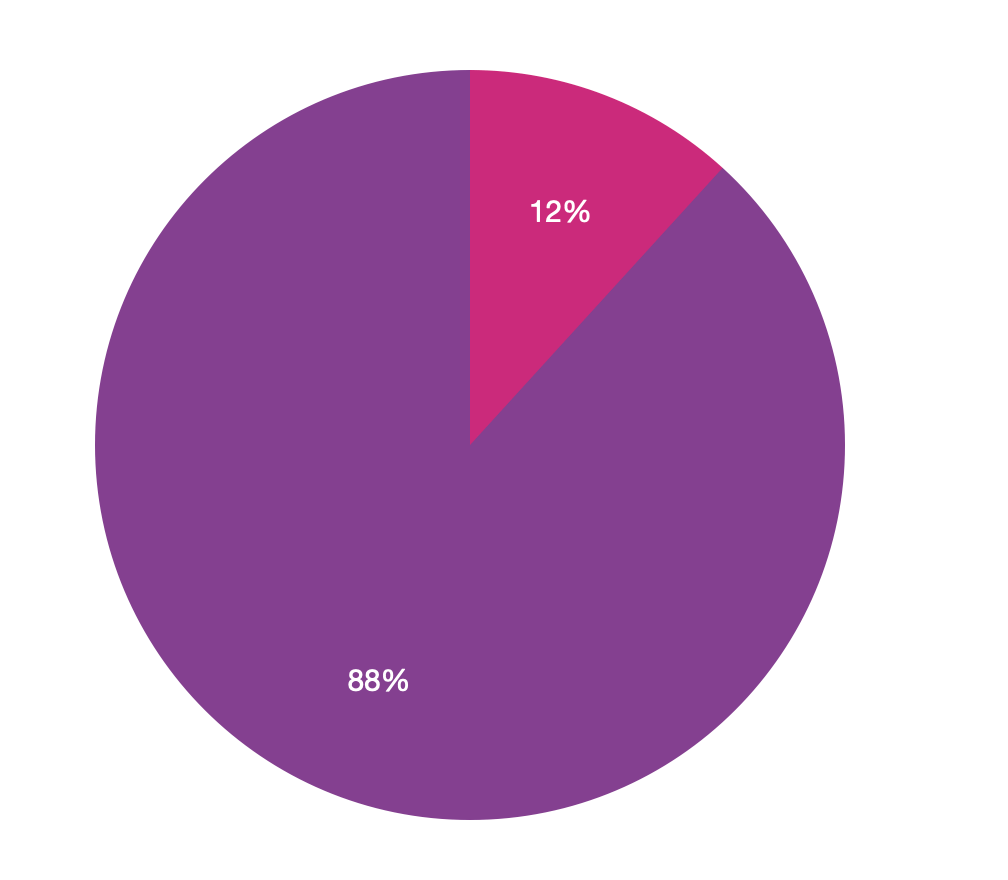 Then if we want to look at books with LGBTQIA+ Representation versus no, wherein I counted books with LGBTQIA+ representation if a main character identified as falling somewhere other than cis, straight, and allo-sexual, you can see this pie chart shows that I hit 12% of reads with LGBTQIA+ characters. I think that’s actually pretty good for me and that I did a better job of keeping track than I often do.