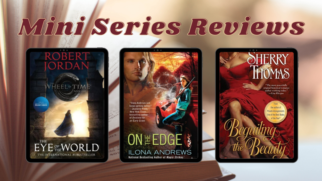It’s been an absolute age since I’ve done a set of series reviews, but I really wanted to talk about my thoughts on Wheel of Time and I figured that I might as well go ahead and throw together a quick series review of the three most recent series I’ve finished! So today I’m going to give y’all a quick glimpse of my thoughts on Wheel of Time by Robert Jordan, and later Brandon Sanderson, The Edge series by Ilona Andrews, and the Fitzhugh trilogy by Sherry Thomas. So, let’s dive in, shall we?