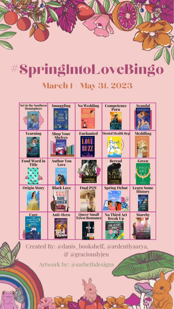 Some of my favorite books I read for bingo include, In a Jam, Ship Wrecked, The Fiancee Farce, The Serpent and the Wings of Night, Yours Truly, Happy Place, Love at First Psych, Hotel of Secrets, Heartbreaker, and The Very Secret Society of Irregular Witches. With honorable mentions to Jana Goes Wild, Single Dads Club, For Her Consideration, and Astrid Parker Doesn’t Fail. But for the most part, I really enjoyed absolutely all of the books I read. And I can tell because I want to keep adding books to this list like Sweep of the Heart and Six Scorched Roses, but at some point, I have to cut myself off, you know? So here we are. Anyway, if you participated, tell me what some of your favorite reads were because I would absolutely love to know.